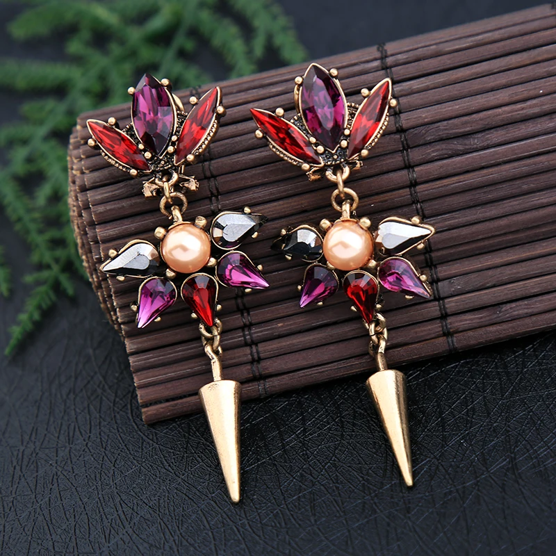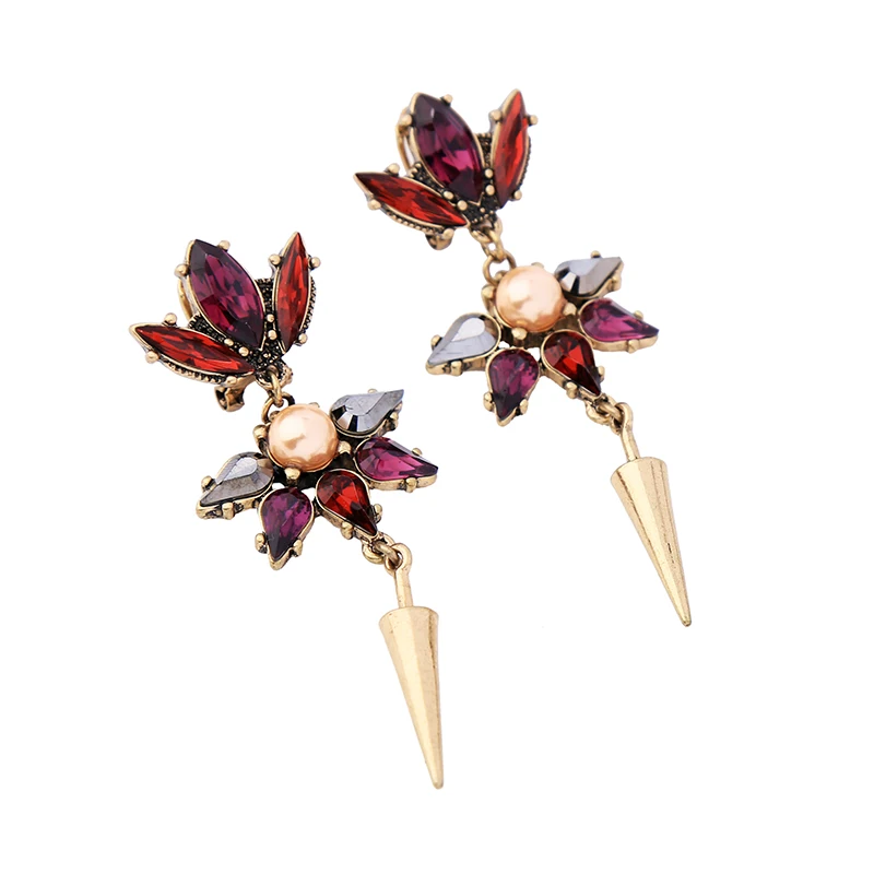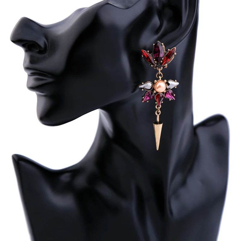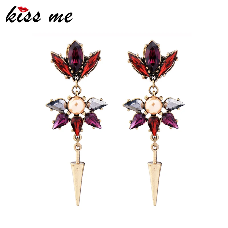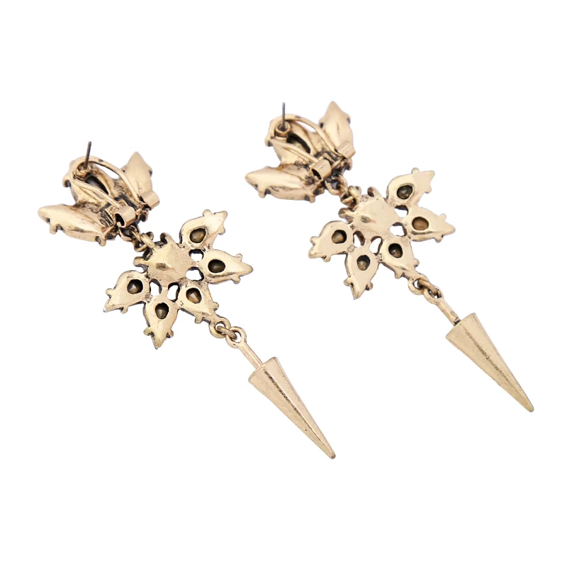 Production name ::KISS ME Gold Color Rivets Geometric Vintage Long Earrings