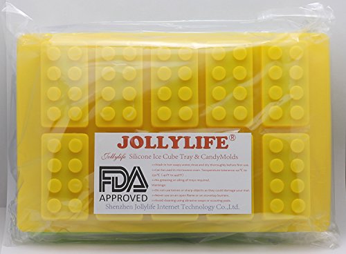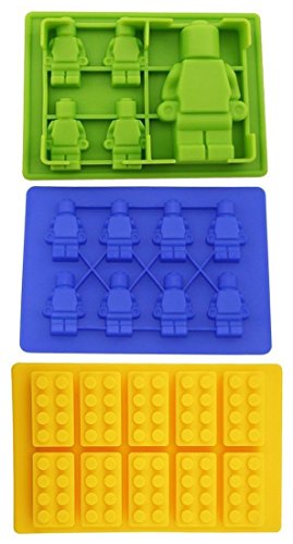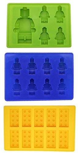 Jollylife Yellow Building Brick & Blue & Green Multi-size Minifigure Silicone Ice Tray Candy Mold Set (Blue/Green/Yellow, 1)