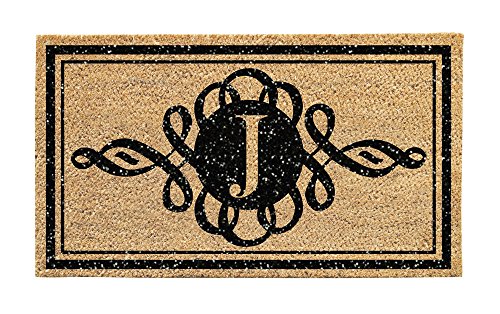 -. Feature : Approximate dimensions are 28" x 16" / Features a J monogram / Scroll design and border are accented with glitter details / Made from natural coir fibers / Features a slip resistant, recycled rubber backing