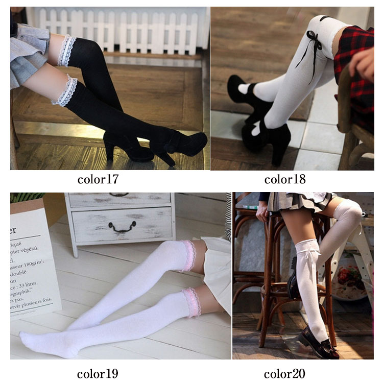 | 全20種類展開!お洒落に決めたいときはコレ!リボン&レース付のオーバーニーソックス足をスッキリと見せてくれる、むくみ知らずのは特徴♪お肌に優しい綿混素材で安心に穿けます。カラー&タイプも豊冨でプチプラなのでイロチで揃えておきたい!シンプルなデザインなので飽きがくることもありません。 普段使いはもちろん、ハロウィン、コスプレ、メイドなどの衣装に是非どうぞ! | |