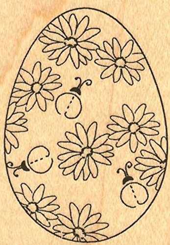 -. Title : {Single Count} Unique & Custom (2" by 2.25" Inches) "Festive Holiday Decor Lady Bug P.R.Int Easter Egg" Rectangle Shaped Genuine Wood Mounted Rubber Inking Stamp