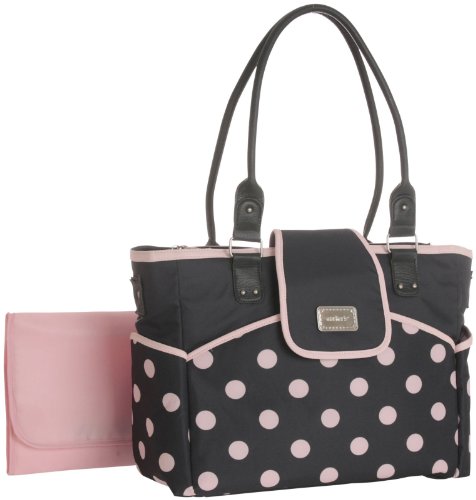 Carters Allover Dot Flap Tote - Grey / Pink Carters Bold Dot and Solid Tote Diaper Bag. Grey Solid with Pink Dots makes a fashion statement on the flap close tote. Top Zip opens to a spacious main compartment featuring 2 mesh storage pockets, divided storage compartment and Zip Close Pocket for secure storage. A front asymmetrical pocket is held closed by the front flap with magnetic closer and Metal Carters Logo Plate. 2 Side Pockets and 1 Back Pocket offer easy access to all of mom's and babies everyday needs. Double Top Handles with Metal Loops and Trim, and attached Stroller Loops allow for comfortable and convenient carrying options. A Diaper Changer Pad is included. Product Dimensions: 17"x 12" x 6.5" 0 |