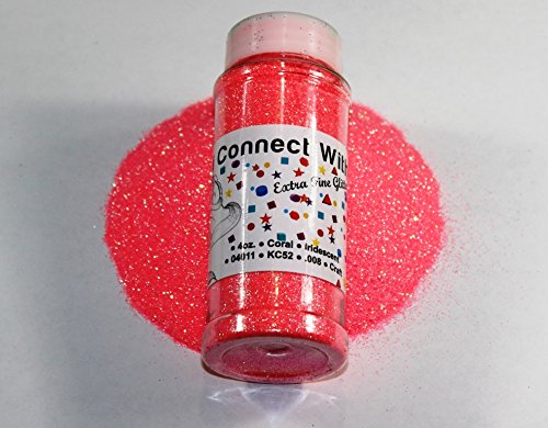 Coral, Extra Fine Iridescent Glitter 1/128, 4oz Shaker Bottle