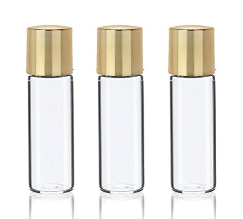 Grand Parfums 1 Dram Clear Glass Vials with Shiny Gold Caps. Upscale Elegant Storage Bottles (12 Bottles)