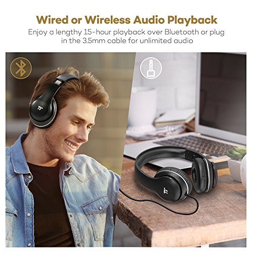 Why not get the best of both worlds? The TaoTronics Headphones feature both wired and wireless audio reproduction. When the battery depletes after 15 hours of playtime, simply connect the included 3.5mm cable for unlimited wired music.
