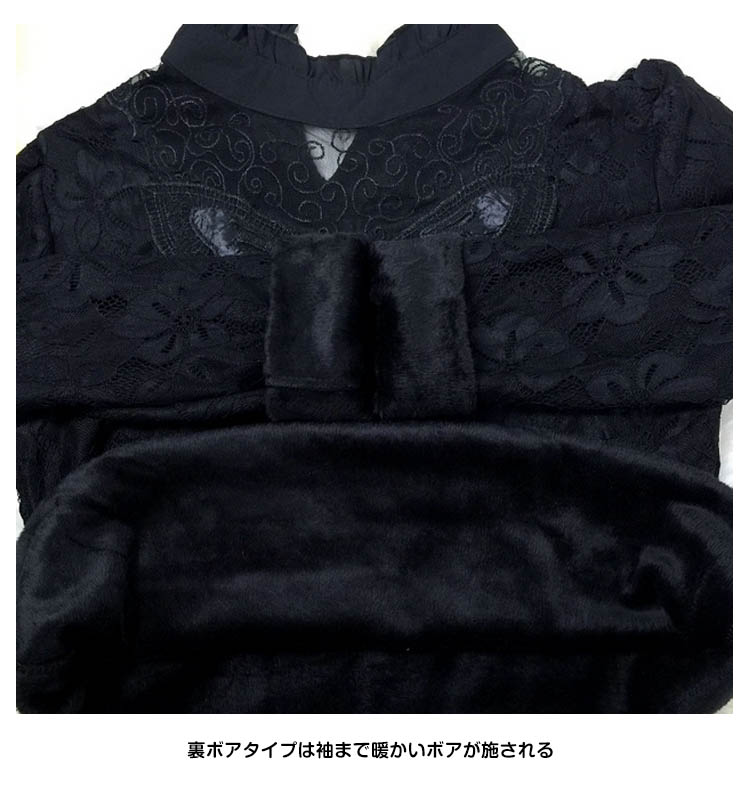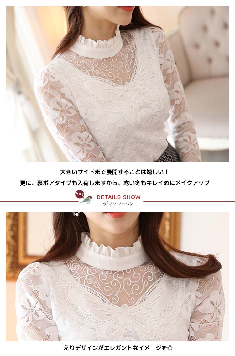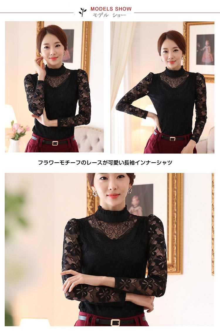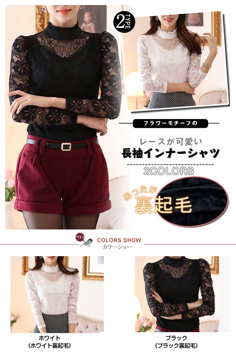 | フラワーモチーフのレースが可愛い長袖インナーシャツテーラードジャケットやトレンチコートなどを羽織れて、カジュアルスタイルや通勤着としても使っていだけます。透かしレースがさりげなくセクシーな印象をアピール大きいサイドまで展開することは嬉しい!更に、裏ボアタイプも入荷しますから、寒い冬もキレイめにメイクアップ | |