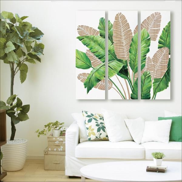 | リッチなサイズの3枚組のウッドボードにハンドペイントされたナチュラルグリーンのリーフ柄。その上に手彫りされたリーフやウッド柄が、スタイリッシュなインパクトをインテリアにもたらします。 |
