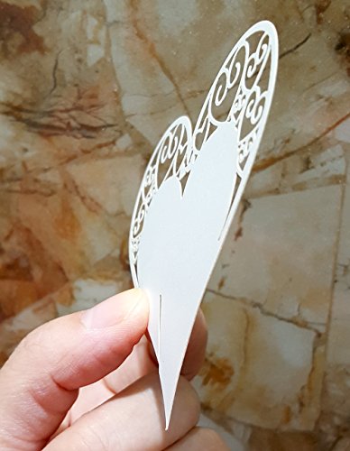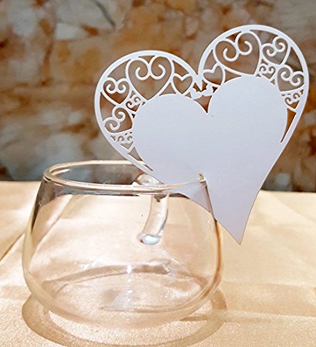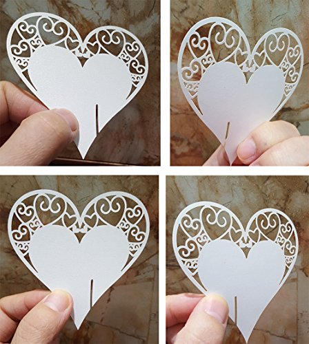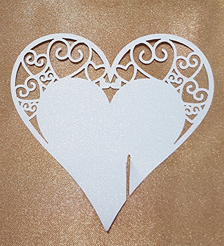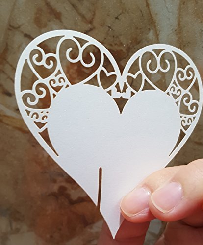 Premium 50pcs Wedding Place Table Name Cards 3D Laser Cut Love Heart Seating Card Party Wine Glass Cup Decoration Card for Christmas Engagement Birthday Shower Favor (White 2)