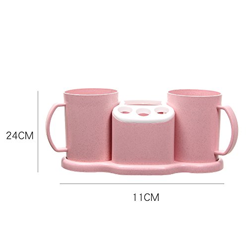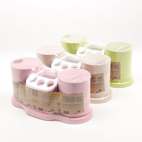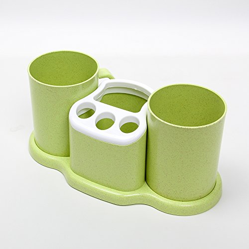 ACE Househelper Toothbrush Holder N atural Wheat Straw Anti-dust with 2 Cups Mounted Electric Toothbrush Storage Set(PINK-GREEN-KHAKI) (GREEN)