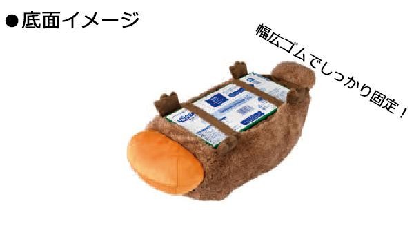 かわいいカモノハシがティッシュカバーになりました。BOXティッシュは底面から簡単にセットでき、2箇所の幅広ゴムでしっかり固定できます。 |