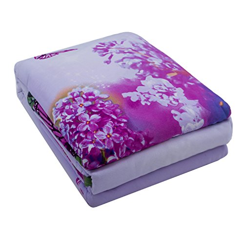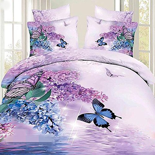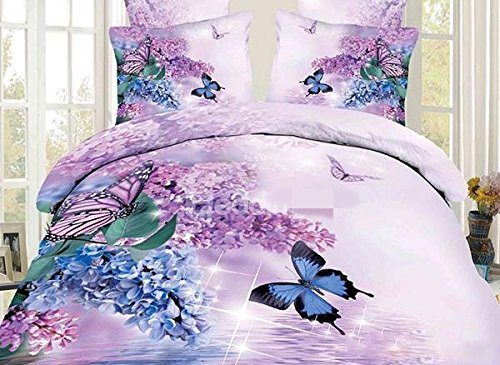 Charming Butterfly and Purple Flower Print 4-Piece 100% Cotton Duvet Cover Sets Modern Bedding Collections,Full
