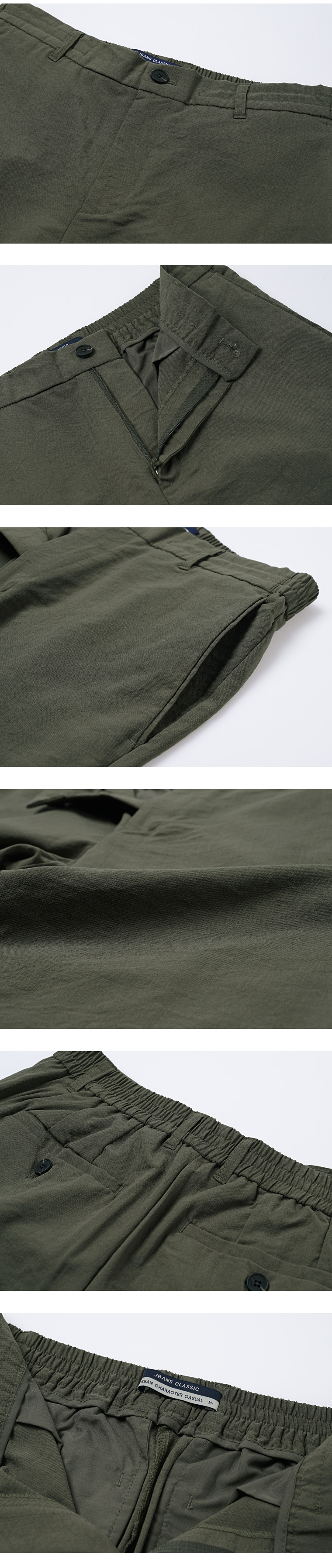가볍고 시원한 쿨텍스를 이용해 제작된 밴딩숏슬랙스입니다. 뒷부분만 밴딩처리된 하프밴딩타입으로 보다 깔끔하면서도 편안한 착용감을 느낄 수 있도록 디자인 되었습니다. 쿨텍스를 사용해 착용감도 좋고, 신축성이 있어 활동성도 높였습니다. 부담없이 착용 가능한 기본컬러로 다양한 아이템과 편안하게 착용하기 좋은 팬츠입니다. 특히 헨리넥셔츠나 루즈한 핏의 티셔츠와 매치하면 잘 어울립니다.