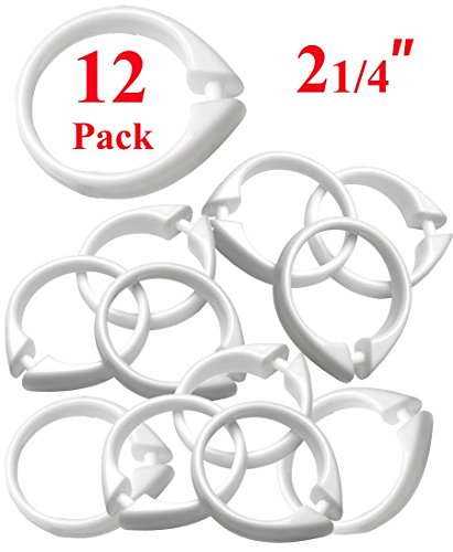 - Set of 12 easy-to-use plastic snap on shower curtain rings, size: 2’’ diameter.