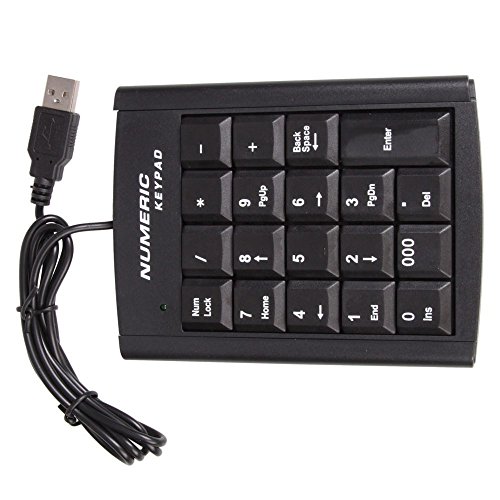 Features: 1. 100% Brand New,quality is very high. 2. Plug and Play Installation. No software driver required. 3. With 19 keys Numeric Number Keypad, small and very good looking,Easy To Carry. 4. Compact and fits easily into your computer bag, briefcase, etc. 5. Supports USB port on any PC or laptop. 6. Compatible with Windows 98SE/2000/ME/XP/2003/Vista/Win7/Win8/Win8.1/Win10, and Mac OS X 7. Color: Black. Package include: 1 x Numeric Keypad
