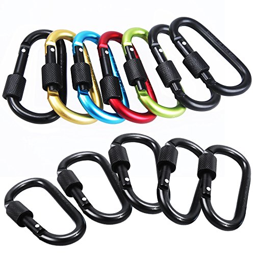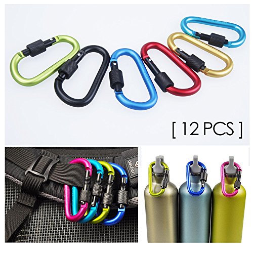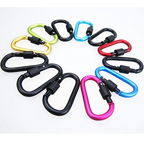 Aluminum Alloy D Ring Locking Carabiner, Sahara Sailor Spring Snap Carabiner KeyChain Clips Hook Buckle with 12 Count