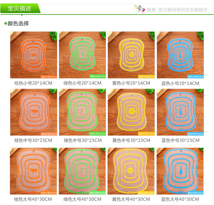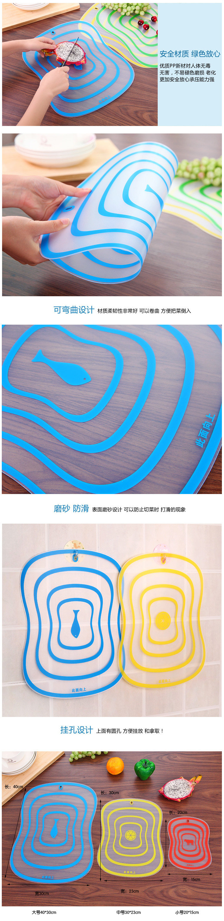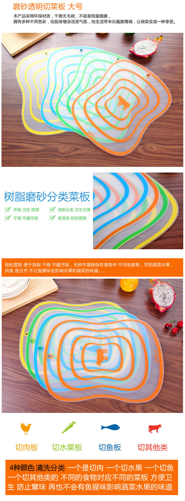 Cleaning classification, one is cut meat, a cut fruit, a cut fish, a cut of other types of different food corresponding to different cutting board to facilitate health to prevent the string taste no longer have fish smell the taste of fruits and vegetables.