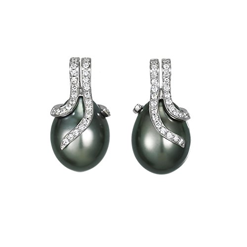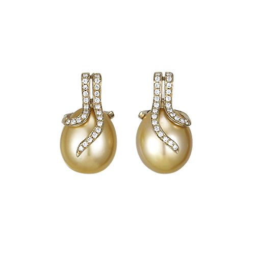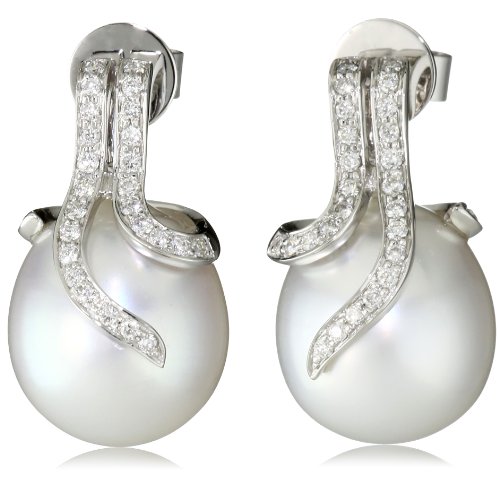 12-13mm Natural Color White South Sea cultured pearls are hand wrapped in .43ct of diamonds set in 14k white gold.