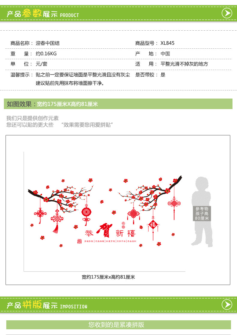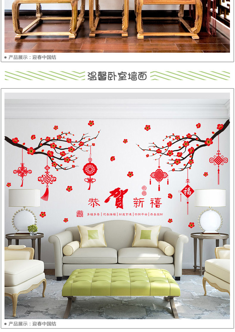 狗年迎春中国结场景布置过年气氛窗户玻璃移门窗花贴防水贴画