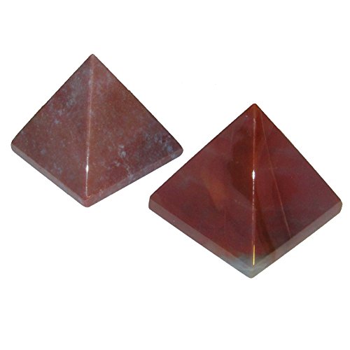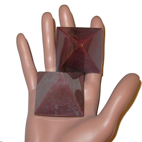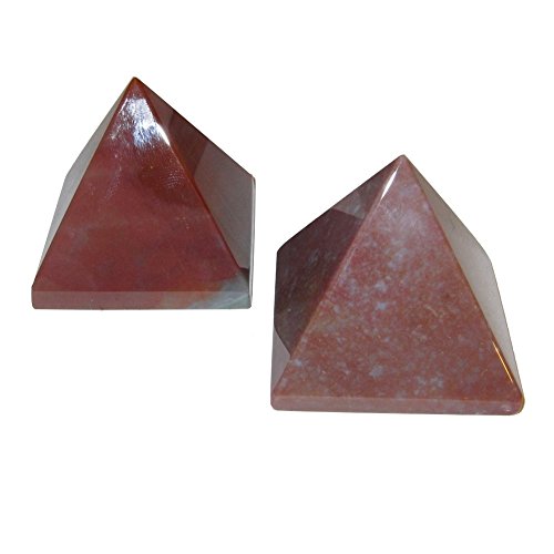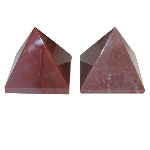 Your unique pyramid set is made from gorgeous red and lavender bloodstone. They are polished to a shine, yet retains some rough grooves and edges native to genuine gemstone. Receive the exact set featured when you order from Satin Crystals.