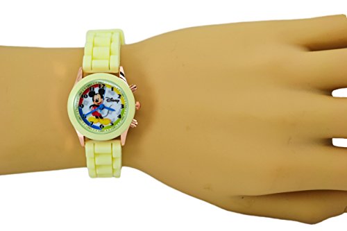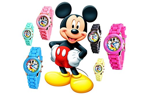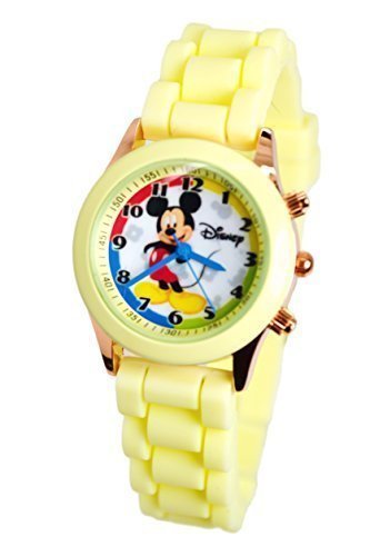 Product Description Disney Mickey Mouse Watch W/Fashion Buttons In Can Pen/Glasses Gift Box. Small Analog Display. Adjustable Soft Eco Rubber Band 9"L. NOTE: Pens And Glasses Are Not Included. 0