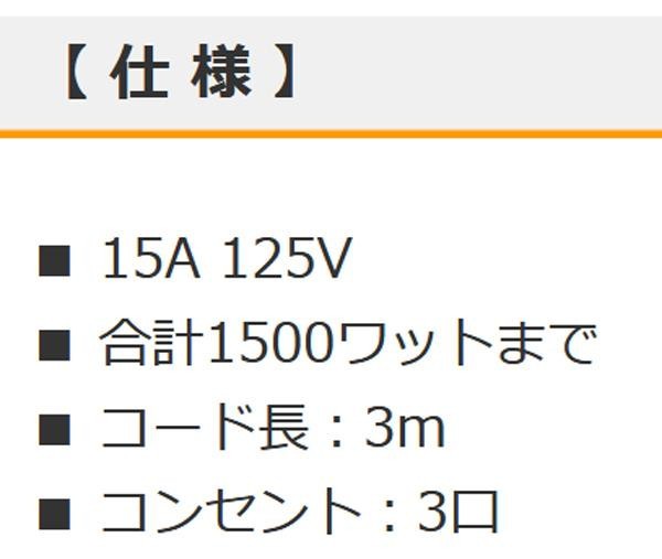 fk094igrjsプラグにはトラッキング防止カバーが付いていて安心ですコードは、導線の二重被ふくで強度を強化しました サイズ 個装サイズ:13×30×2.5cm 重量 個装重量:280g 生産国 中国 トラッキング防止カバーが付いた3個口タップ プラグにはトラッキング防止カバーが付いていて安心ですコードは、導線の二重被ふくで強度を強化しました