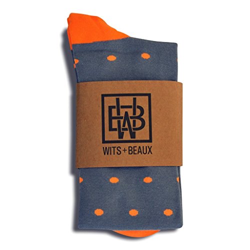 -. Binding : Apparel -. Brand : Wits + Beaux -. ClothingSize : Large -. Color : Gray Orange -. Department : mens -. Feature : LONG LASTING AND DURABLE SOCKS: One size fits most. We use a premium blend of 80% Combed Cotton + 17% Polyester + 3% Spandex to create long lasting quality socks that fit almost any feet. Hang dry for optimal performance and extended life, or throw them in the dryer and they'll still out last the color and durability of those cheap socks. Buy our high quality unique socks that will last, you know the saying, 'you get what you pay for'! Stop wasting your money on socks that won't last. / STAY UP TECHNOLOGY: Combine extreme stretching, top-notch premium fabric blend with an extra-long design, and you have one fine-fitting, never-sagging sock. Our super soft over-the-calf design has extra stretch and longer length to account for shrinkage in the wash and gym days when your calves need to breath while our elastic cuff helps keeps your socks up but won't strangle your legs. / ALL DAY COMFORT: Our blend of cotton and synthetic fibers combined with the top sock knitting machines out there, we developed a thin yet durable sock that has been fine-tuned to deliver tranquilizing breathability. Elasticity under the arch holds fabric comfortably to the toes and heel, eliminating bunching and seamless stitching means no pesky thread-knots pestering your toes. What does all this mean? Comfort comfort comfort! / POWER & CONFIDENCE: Our patterns are fun, colorful and always trendsetting, sure to stimulate conversations, enhance your confidence and give you that edge to close the big deal or that big date. Trust us when we say, an amazing pair of socks has the power to change your whole attitude, because when you look good, you feel good and everyone around you will feel it too. / BEST GIFT EVER: When your recipient of our premium over-the-calf dress socks constantly gets compliments and attention, you will be known as the most thoughtful gift giver ever. The perfect fashionable gift with unique patterns and colors in each box - no grandpa argyle patterns or shrink-to-nothing crew socks here. Wedding Favors, Groomsmen Gifts, Fathers Day, Valentines Day, Christmas Stocking Stuffers and Birthday Presents are all perfect occasions for the sock enthusiast in your life. -. Model : SS-S06602 -. ProductGroup : Apparel -. ProductTypeName : SOCKSHOSIERY -. Size : Large -. Title : Wits + Beaux Mens Premium Stretch CottonPoly Over-The-Calf Bonfire Ashes Dress Socks