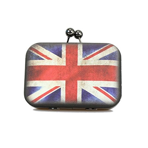 -. Title : Clutch Metal Purse with Kiss Lock Clasps on Vintage Style P.R.Inted Vinyl