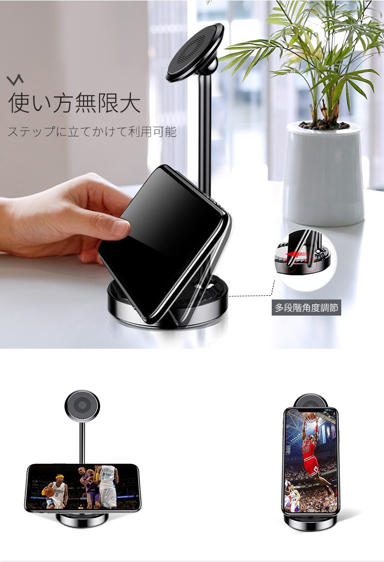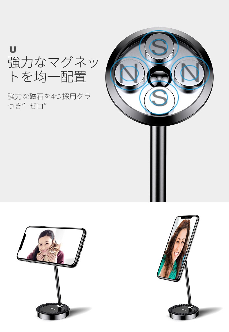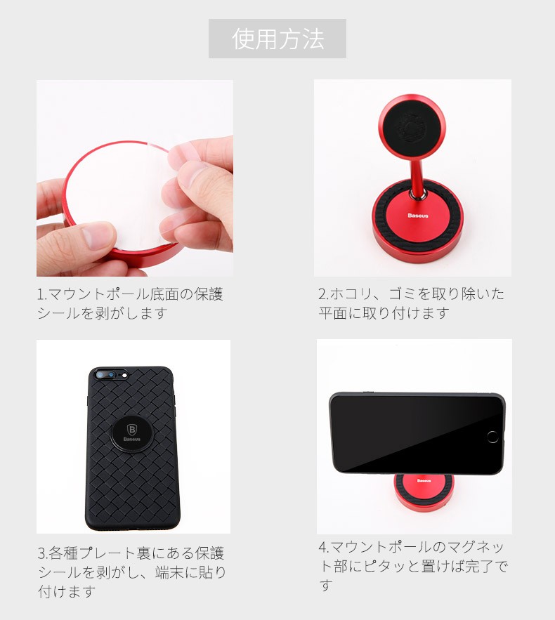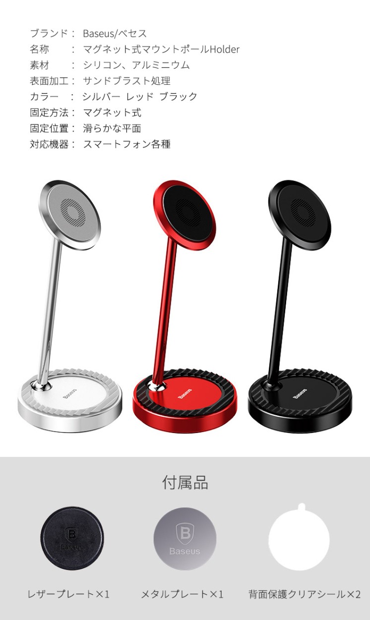光沢が栄えるアルミニウムマウントポールカラー・シルバー・レッド・ブラック【 美しさと利便性を共存 】よくあるプラスチック製の製品はもう要りません。アルミニウムの鏡面がかった高級感が栄えるスマホスタンド登場!強力なネオジム磁石を採用し、グラつきゼロ!下部にも置けるようステップを配し、マグネット部は360°回転使い方は無限大です。【 利用者目線の使用感 】かんたん工具不要の3ステップ取り付け高精度な球体可動部は360°自由自在に調整でき、誰でもかんたんにご利用可能マグネット部、ステップ共に縦置き横置き可能で、動画鑑賞、ゲームプレイのお供に最適!非利用時でも"絵"になるアルミニウムの洗練された美しさをアナタに※ こちらの商品はクロネコヤマトDM便サイズオーバーの為、日本郵便定形外での発送となります。追跡サービスがご利用できませんので予めご了承の上ご購入下さい。