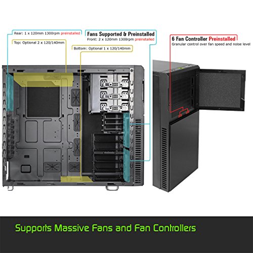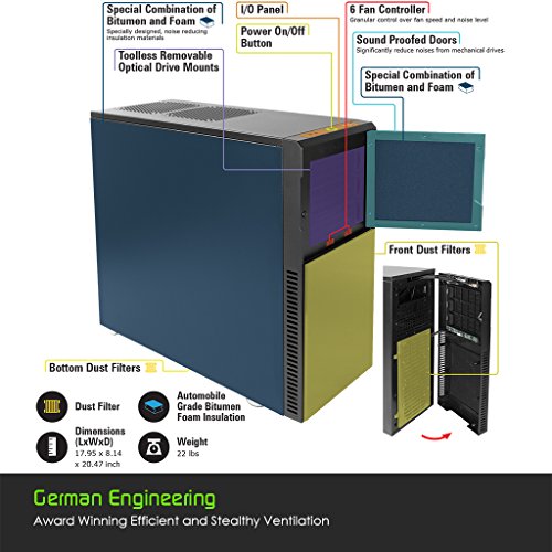 With the Deep Silence 3 we proudly present a classic midi tower from the next generation of Silent PC cases. The Deep Silence 3 offers an elegant design and harmonious, meaningful features. The middle HDD cage is removable, allowing the easy installation even of very long graphics cards. The upper part of the front offers a foam-isolated door. Three 5.25 inch bays can be found behind the door, as well as the 2-channel fan control for up to six fans and the reset button. The door is equipped with a magnet to ensure a fast closing and easy opening. On the front of the top cover you can find the I/O-panel. It offers 2 x USB 3.0, 1 x USB 2.0, as well as Mic and Audio connectors. This ensures that appropriate devices can be connected quickly and easily. You can mount ATX, Micro-ATX and Mini-ITX motherboards in the Deep Silence 3 case. Thanks to the modular HDD cage you can install VGA cards with a maximum length of 430 mm. If you want to employ all HDD cages, you can install cards of up to 345 mm in length. Specifications: Form Factor: ATX, Micro-ATX, Mini-ITX; 5.25 inch drive bay external: 3 x; 3.5 inch drive bay external: 1 x (optional); 3.5 inch drive bay internal: 5 x 5; 2.5 inch drive bay internal: 3 x; Case Fan (Front): 2 x 120 mm (1,300 rpm); Case Fan (Rear): 1 x 120 mm (1,300 rpm); Case Fan (Top): optional 2 x 120/140 mm; Case Fan (Bottom): optional 1 x 120/140 mm; Height (Approx.): 456 mm; Width (Approx.): 207 mm; Depth (Approx.): 520 mm; Weight (Approx.): 9.3 kg; Maximum height of CPU coolers: 165 mm; Maximum VGA Card Length: 345 (430) mm. For warranty services visit support.nanoxiausa.com.Feature