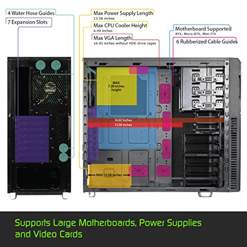 Beginner friendly mid tower case that is easy to build in, without sacrificing room for future upgrades; Fits ATX and Micro-ATX motherboards.