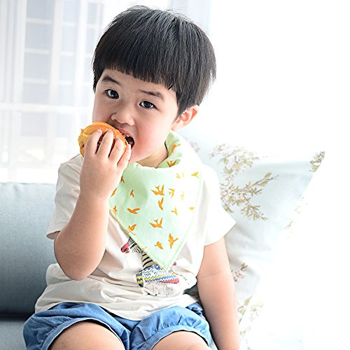 -. Feature : ABSORBENT COTTON DROOL BIB - These stylish drool bibs are made of 100% absorbent cotton on the front and 100% polyester fleece on the back. The front of the baby bib is a stylish knit fabric and the back is a super soft fleece that Protect & keep your drool/teething baby dry from all dribble and spit ups. No more wet clothes!