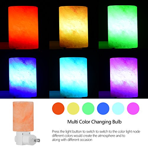 [MULTIFUNTION NIGHT LIGHT]: Come with 2pcs bulbs: One 7W incandescent bulb - Not Dazzling but enough bright as a gentle nightlight for bedroom, creates a calming ambiance and helps release pressure; One LED Color Changing Bulbs - Automatically change 6 colors, creates colorful and romantic atmosphere, bring you different experience of salt lamp one more choice, one more experience.