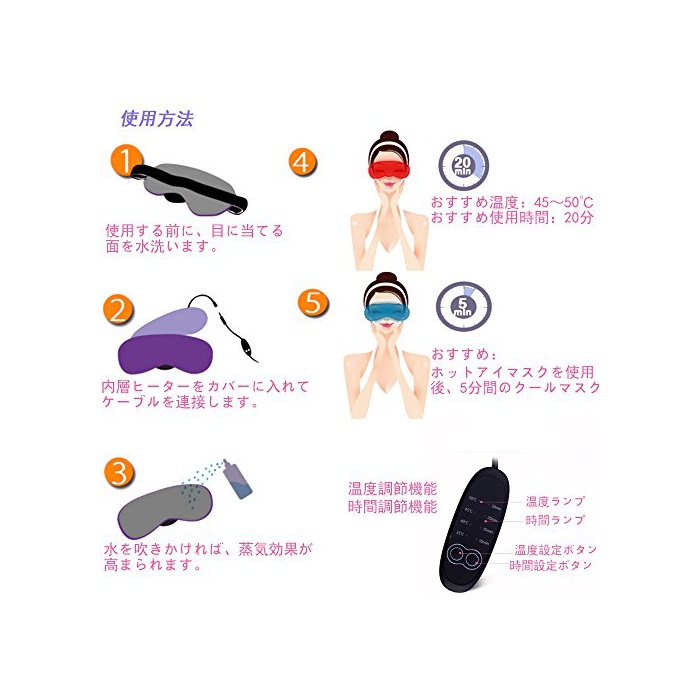 【간단한 사용법】USB케이블로 충전 하면서 핫 아이마스《구》를 사용하고, 눈(째)를 따뜻하 #고 있습니다.타이머 리모콘으로 주문에 의해 시간이나 온도를 조절.추천인 시간이 20분에,온도가 45~50분입니다.