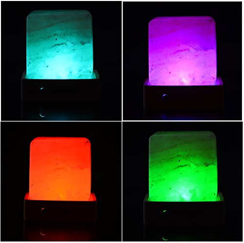 Natural Himalayan Salt Lamp, Chargeable Salt Cube Lamp Put It Anywhere You Want!!! Yuedaer Color Changing Rock Salt Lamp Hand Carved Rock Cube USB Night Light with Wood Base (Variable Colors Version)