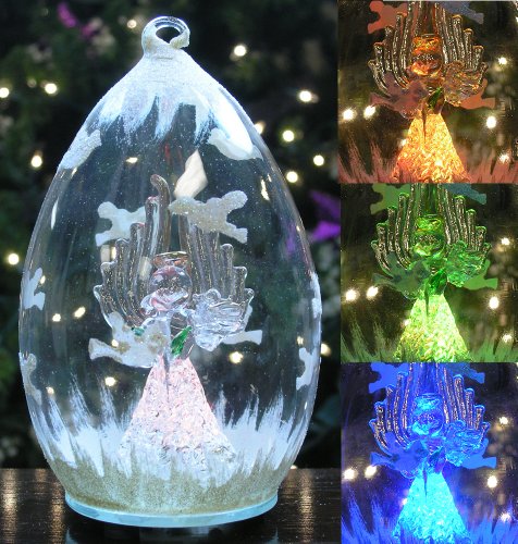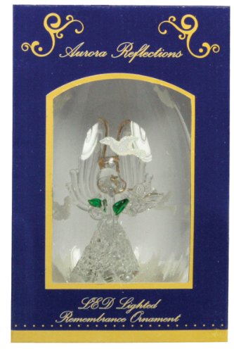 -. Feature : Remembrance Ornament Angel with Rose and Doves - Glass Teardrop Shape Collectible Keepsake / BATTERIES INCLUDED: Includes two sets of batteries. Colors smoothly cycle red, green and blue. / SIZE: 6" x 3.5" / UNIQUE GIFT IDEA: Give to mom, grandma sister, mother-in-law, daughter-in-law, or friend for Christmas or Birthday present. Excellent gift for an ornament collector. DECORATIVE USES: display this collectible keepsake on a tabletop, hang from the Christmas tree or display stand. Put on the fireplace mantel, window sill, book shelf or curio cabinet. Place in the kitchen, dining room, living room or bathroom. / GIFT BOXED: Specially gift boxed with a comforting remembrance message: This angel has a very special meaning and was created to comfort those who are mourning the loss of a loved one. A single petal has fallen from her rose, as a symbol of love and loss. It reminds us that even after someone we treasure is no longer here, our love for them and their love for us will forever remain in our hearts. A white dove symbolizes the eternal peace that God has promised all of us and to help us find peace within our own lives. In this time of deepest sorrow, may this angel help to comfort and console you.