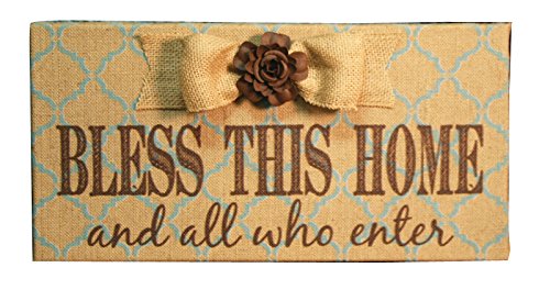 The Faith Collection Turquoise Lattice Bless This Home with Bow Burlap Plaque, 16" x 8"