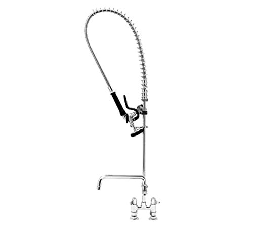T&S Brass 5PR-4D12 Pre-Rinse Deck Mount Base with 4-Inch Centers, 6-Inch Wall Bracket and 12-Inch Add-On Faucet
