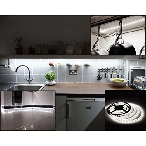 LE 16.4ft Waterproof Flexible LED Light Strip, 300 Units SMD 2835 LED, 6000K Daylight White, LED Tape, 12V LED Light Strips, For Gardens/ Homes/ Kitchen/ Cars/ Bar