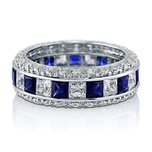 -. Title : BERRICLE Sterling Silver Simulated Blue Sapphire Cubic Zirconia CZ Eternity Band Ring