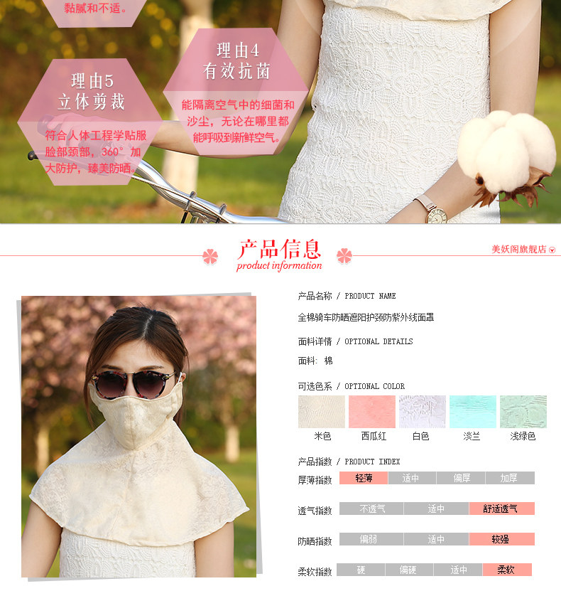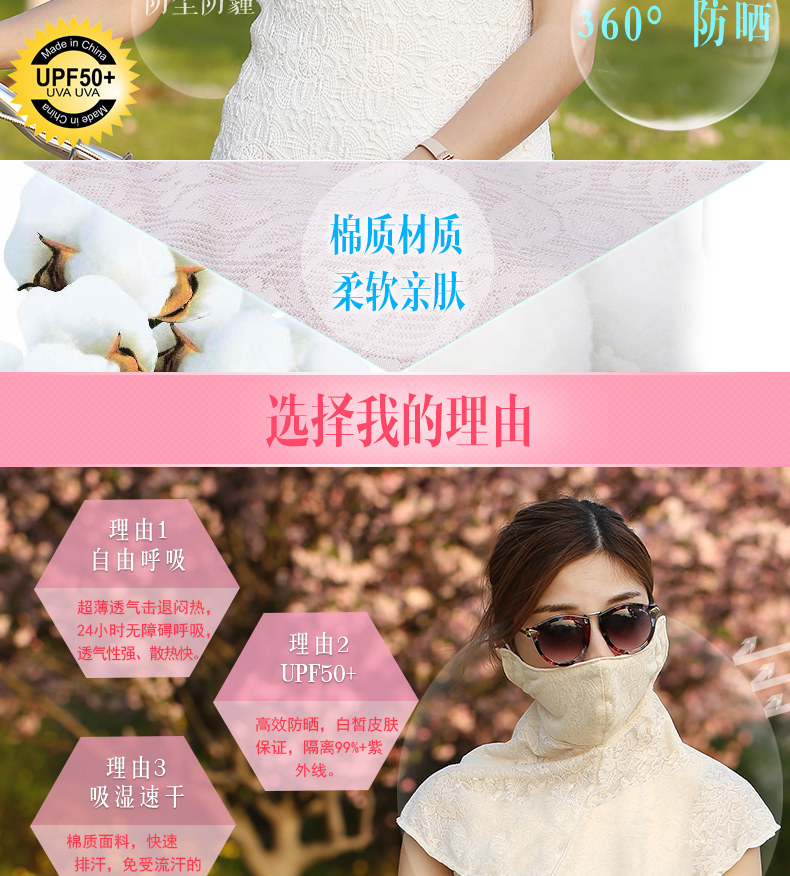 Soft skin-friendly cotton fabric sun protection neck mask covering her face
