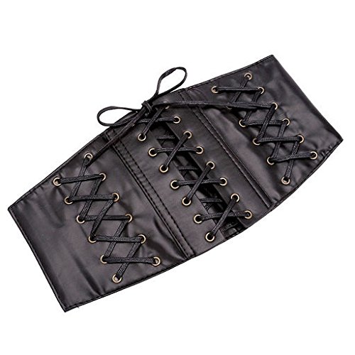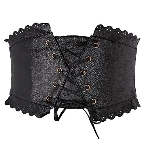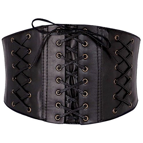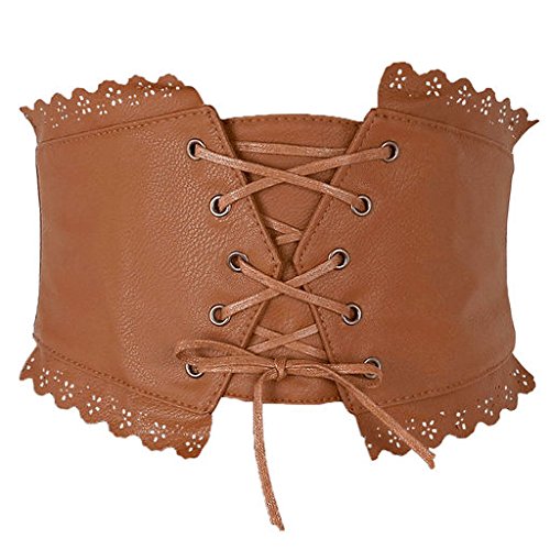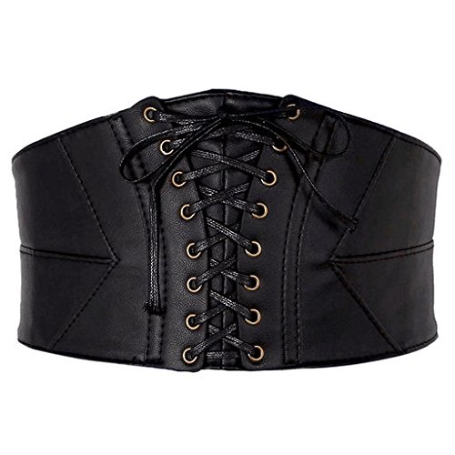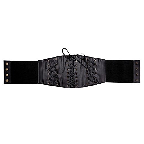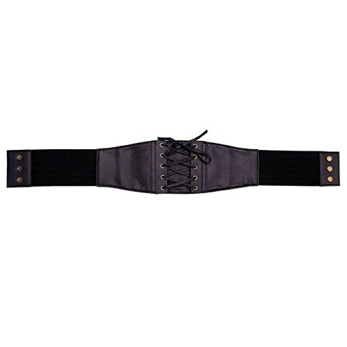 Ayliss Womens Elastic Wide Band Lace-Up Corset Cinch Belt with Press Button