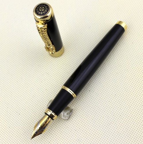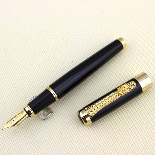 -. Title : Advanced Fountain PEN Jinhao 1200 Black and Golden Dragon Clip Medium Nib 18 Kgp