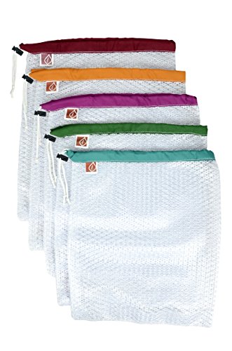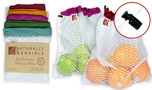 The Original Eco Friendly See Through Washable and Reusable Produce Bags - Soft Premium Lightweight Nylon Mesh Large - 12x14in - Set of 5 (Red, Yellow, Green, Blue, Purple) | By Naturally Sensible