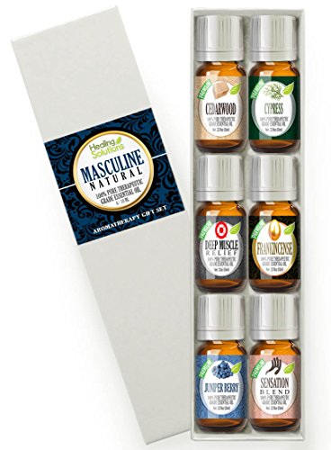 -. Feature : All Healing Solutions sets come beautifully packaged as shown in the listing pictures and make a fantastic gift for any occasion. / The Natural Masculinity Set includes the following oils: Cedarwood, Cypress, Deep Muscle Relief Blend, Frankincense, Juniper Berry, Sensation Blend / The most UNIQUE and AMAZING SMELLING essential oils on the market, in our opinion. If you are not ABSOLUTELY amazed, receive a full refund from the manufacturer, Healing Solutions no questions asked! / Healing Solutions is SUPERIOR because it offers over 170 different oils for blending/pairing including: Adoration Blend Agar Agarwood Ajowan Ajwain Allspice Ambrette Amyris Angelica Root Anise Star Aniseed Anti-Aging Aphrodisiac Balance Balsam Basil Bay Bergamot Betel Leaf Birch Black Pepper Blood Orange Breathe Cade Cajeput Calamus Root Calming Camphor Cananga Caraway Carrot Cassia Cedarwood Celery Seed Chamomile (German & Roman) Chili Seed Cinnamon Bark Cinnamon Leaf Citronella Fresh Citrus Bliss Clary Sage Cleaning Clove Coffee Copaiba Coriander Costmary Cumin Costus Cranberry Cypress CyP.R.Ioli Cubeb Curry Davana Deep Muscle Relief Dill Weed Dragon Rest Earth Wood Elemi Eucalyptus Elecampane Exhale Fennel Fenugreek Fir Needle Frangipani Frankincense French Lavender Galangal Garlic Geranium (Egypt) Ginger Gingergrass Good Night Goldenrod Grapefruit Guaiacwood Harmony Head Ease Helichrysum Hickory nut Ho Wood Hope Horseradish Hydacheim Hyssop Idaho Invigorate Jamarosa Jasmine Absolute Joy Juniper Berry Key Lime Labdanum Ledum Lemon Lemon Linaloe Eucalyptus Lemon Myrtle Lemongrass Love Mace Mandarin Meditation Melaleuca See Melissa Mentha Mountain Mugwort Mustard Orris Myrrh Myrtle Neroli Niaouli Nutmeg Onion Oregano Palmarosa Palo Santo PaP.R.Ika Oleoresin Palo Patchouli Peace Penny Royal Perilla Peppermint (like NOW foods) Peru Balsam Pest Shield Petitgrain Pimento Pine Pink Lotus Premium Thieves Protective (like Doterra & Young Living Purification) Ravensara Red Relaxation Renew Restoration Bulgarian Moroccan Rose Geranium Rosemary Rosehip Rosewood Sage Sandalwood Sensation Spearmint Spikenard Spruce Stay Alert Stress Relief (like Eden's Garden Plant Therapy & Guru) Styrax Benzoin (like Deep Blue OnGuard Diffuser) Sweet Ambiance Sweet Marjoram Sweet Orange Tangerine Tansy Thuja Thyme Tonka Bean Tree Tea Turmeric Valerian Vanilla Vetiver Wintergreen Zedoary and Ylang