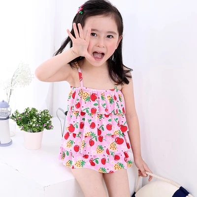 韩国儿童泳衣女孩连体可爱宝宝学生公主吊带裙式3-10岁女童游泳衣