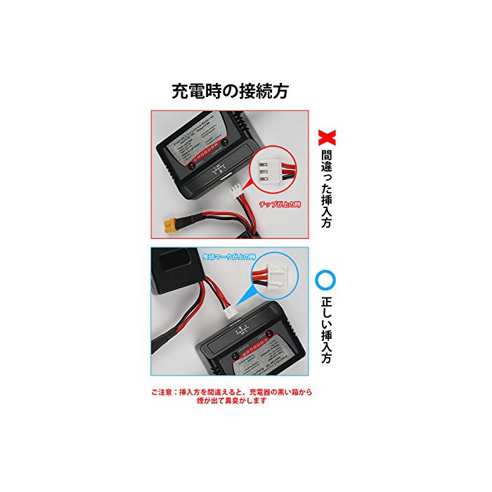 【2.4GHZ기술 채용 충전시의 주의】리모콘은 신형의 투웨이2.4GHZ기술을 응용하고, 약신호 경보와 저 전압 경보 두 개의 기능이 있습니다.리모콘의 상태 지시 램프와 음의 변화부터 정보를 판단하고, 빨리 문제를 해결합니다.그리고,리모콘의 콘트롤 거리가 레벨 업,콩트 로우 거리는 300미터부터 500미터까지를 확대했습니다.◆삽입 분(쪽,편)를 잘못하면,충전기가 검은 상자에서연이 나와 이상한 냄새가 합니다.충전기는 소손의 위험이 어느(있는) 때문에,반드시 주의해 하십시오.