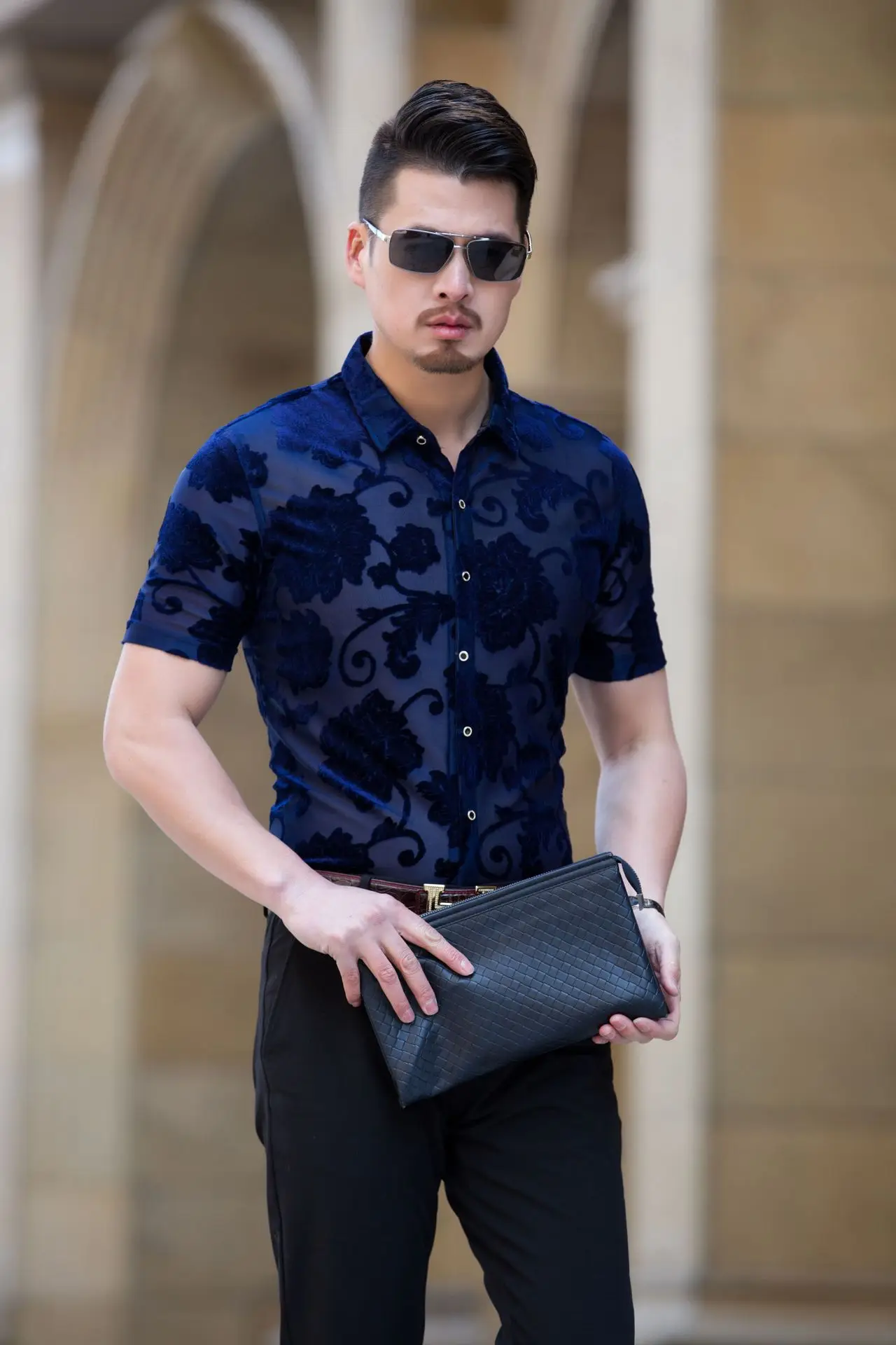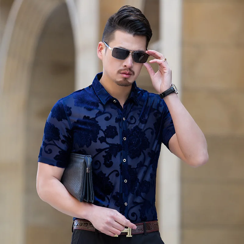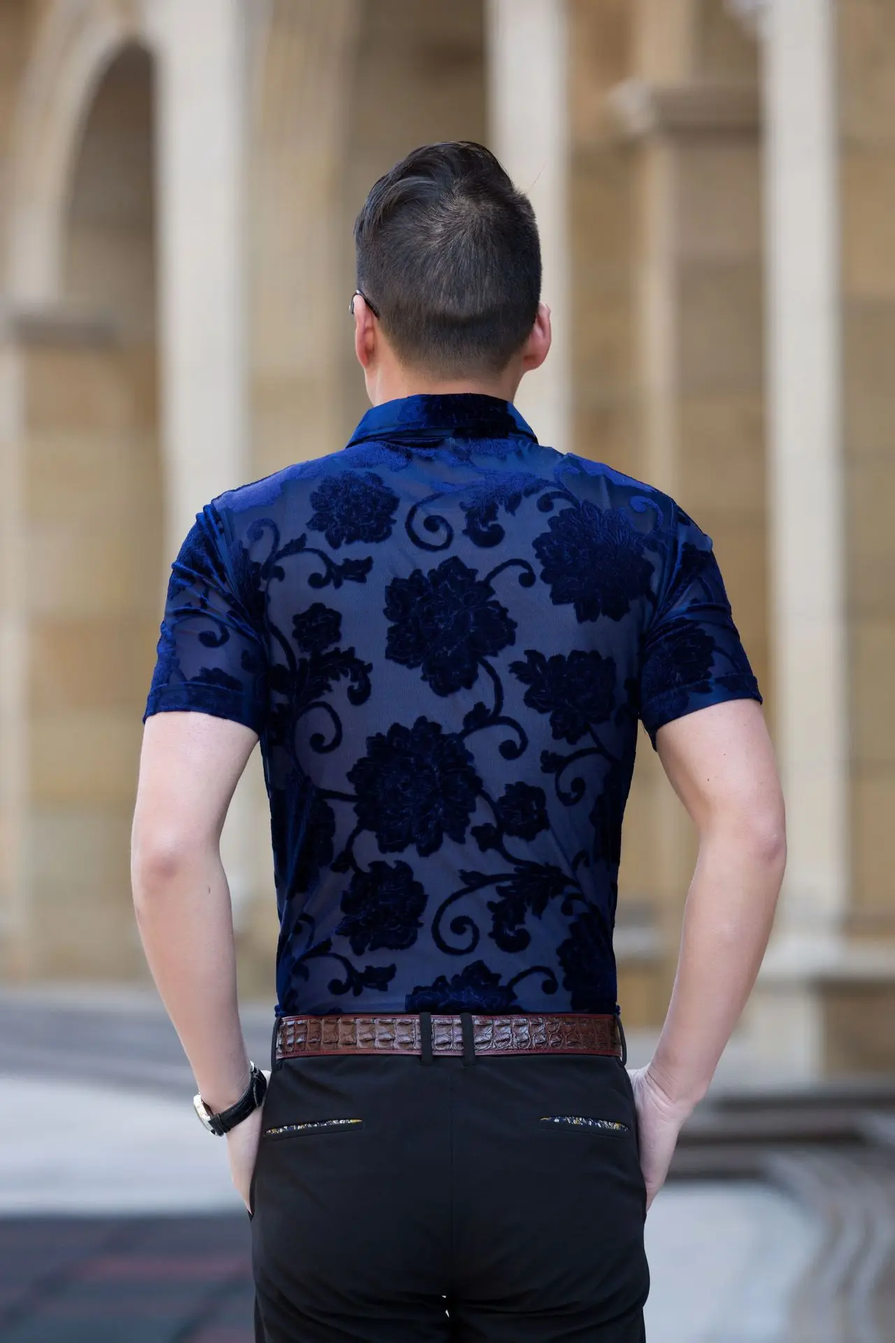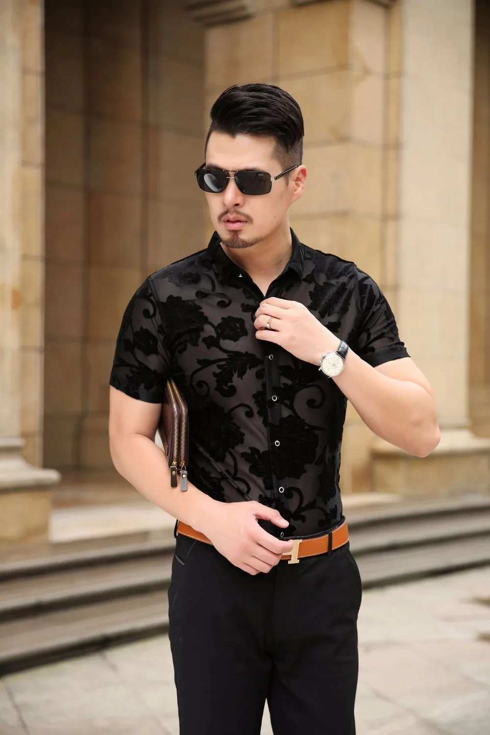 style:Sexy Lace Shirt,flowers lace shirt,mesh shirt men