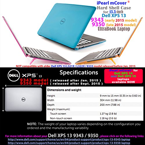 Aqua iPearl mCover Hard Shell Case for 13.3" Dell XPS 13 9343 / 9350 model(released after Jan. 2015, not fitting older L321X / L322X / 9333 model released before Jan. 2015) Ultrabook laptop - AQUA
