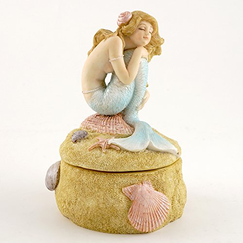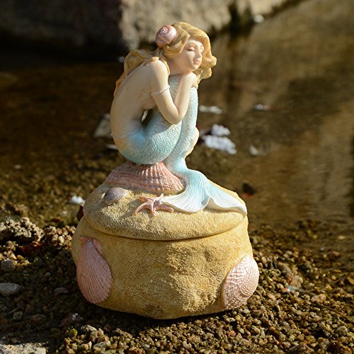 -. Binding : Kitchen -. Brand : King Tut's Secret -. Color : colorful -. EAN : 0799475663963 -. Feature : Measures 6 inches tall / Small trinket box with a mermaid daydreaming on top / Premium quality colorfully hand-painted resin / Perfect for mermaid lovers or as gift for children -. Label : King Tut's Secret -. Manufacturer : King Tut's Secret -. PackageQuantity : 1 -. ProductGroup : Home -. ProductTypeName : HOME -. Publisher : King Tut's Secret -. Studio : King Tut's Secret -. Title : Mermaid Daydreaming Atop Small Trinket Box Colored Figurine -. UPC : 799475663963