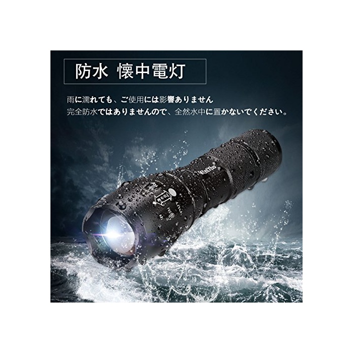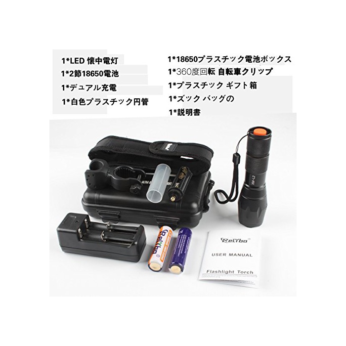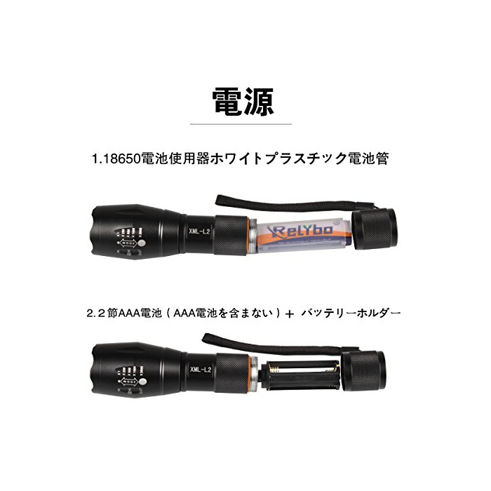 원본상품명: Relybo 中電xm-l2 led 中電 力 超高輝度 1200ルメン 防水明るい ズム機能 5モド 高性能 18650 2本 充電式電池